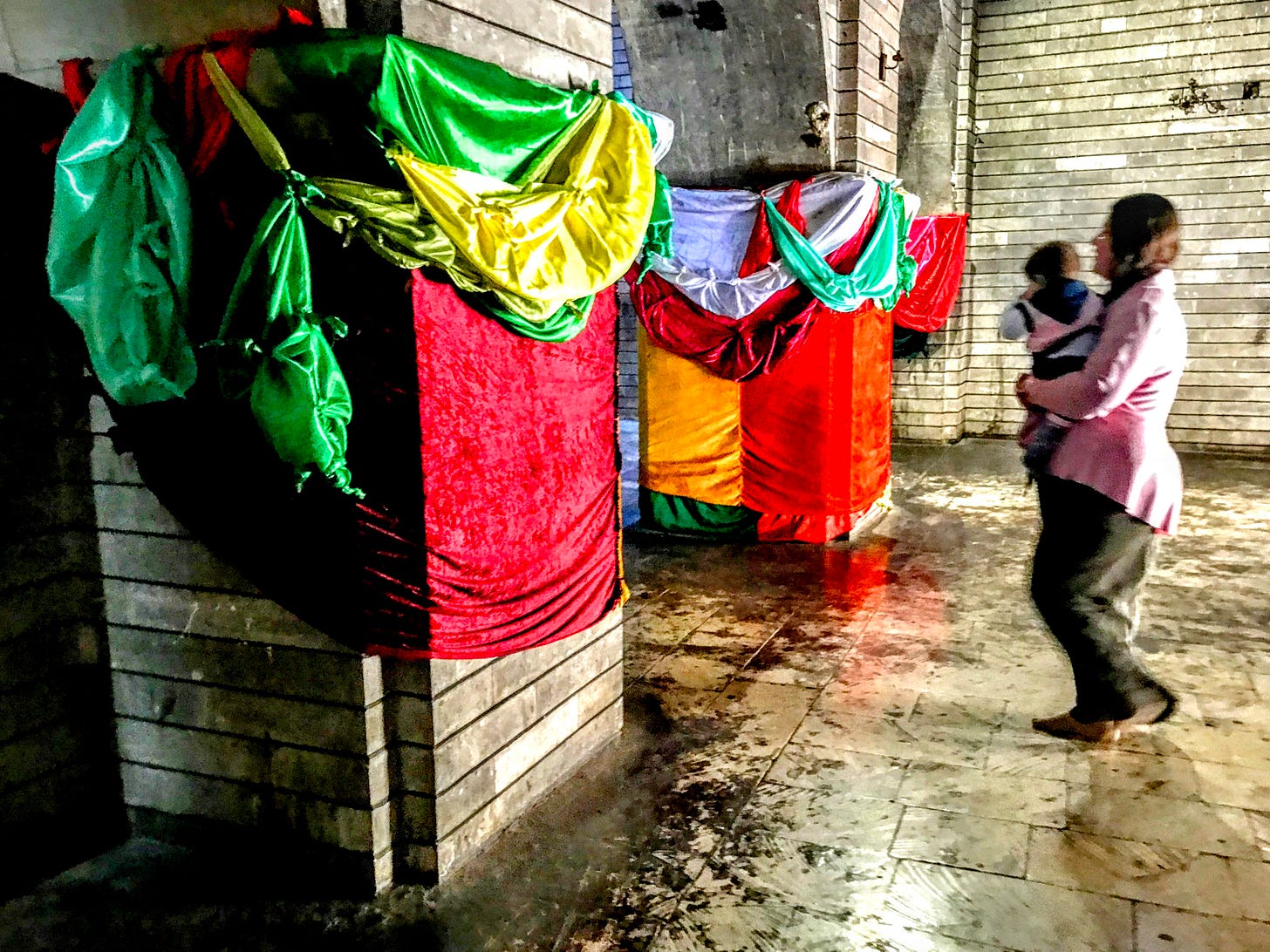 Lalish is where they come to heal. Pilgrims walk barefoot, knotting silken cloths at Sheikh Adi's tomb and circling it as if binding themselves to something eternal. Stone houses on the premises stand empty, doors always unlocked, ready to receive any Yazidi in need. The spiritual leader resides at Lalish, along with his family and Yazidi ascetics called faqirs, who maintain sacred fire for nightly torch processions. To sanctify their pilgrimage, visiting worshippers dip their hands into urns filled with black olive oil, leaving handprints on the walls.